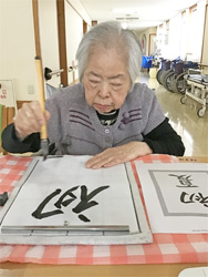 「何色にしようか?」「字は何を書いたらいいかな?」「あなたの作品いいわね」など、皆様でいろいろ話しながら取り組んでおられました。