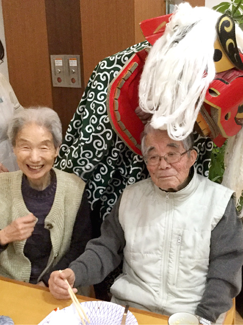 2025.1 初詣正月遊び・おせち (介護付一般居室) 鶴寿千歳。寒さが厳しいので、今年もせいわ神社へ参拝しました。 お正月は思い思いの時間を過ごしました。 皆様に、おせちを召し上がっていただきました。 出張寿司・獅子舞 (住宅型居室) すし遊館の職人さんが目の前で握るお寿司を、皆さん堪能されていました。 毎年恒例の獅子舞です!1年をより良く過ごしていただくよう、頭を噛んでもらっていました。